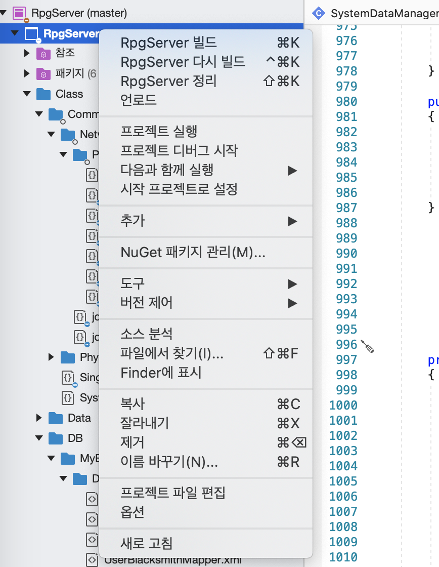 Visual Studio for Mac에서 빌드 실패가 떴다.