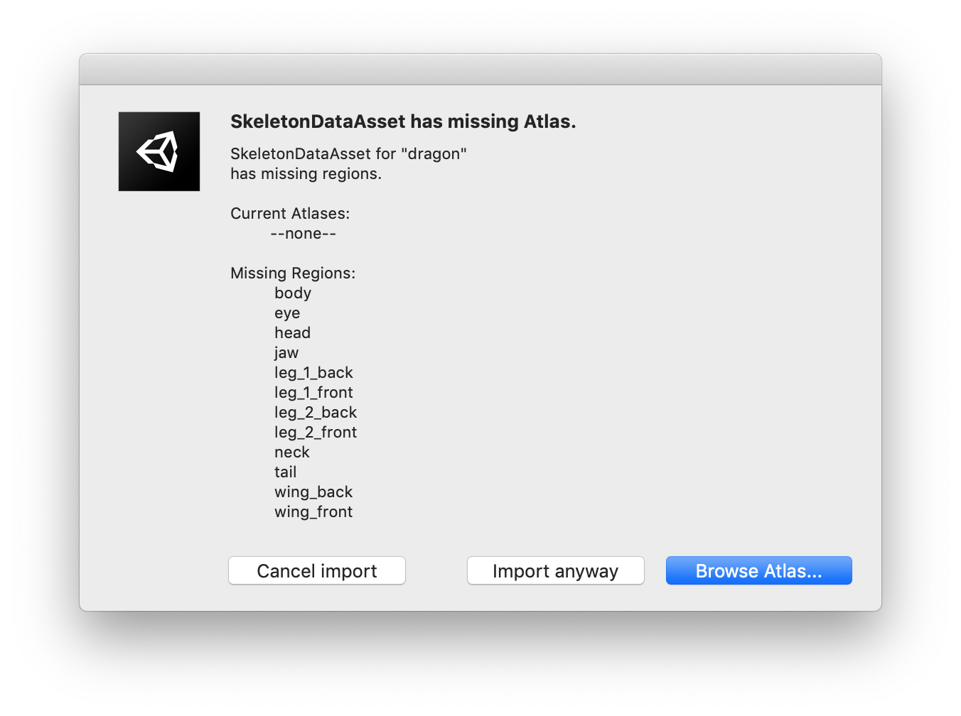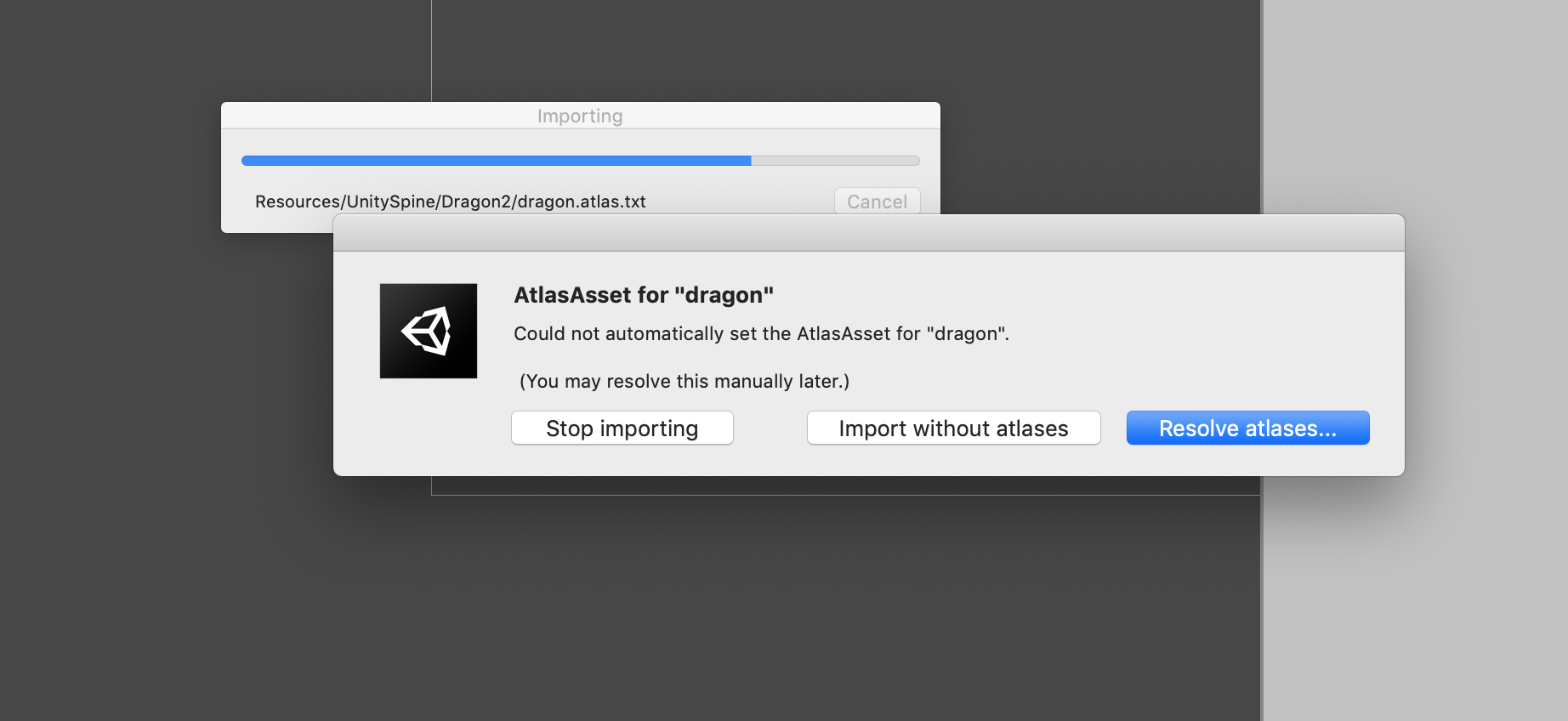 Spine에서 만든 캐릭터를 Unity로 가져오는데 아래 그림과 같은 에러가 발생했다.