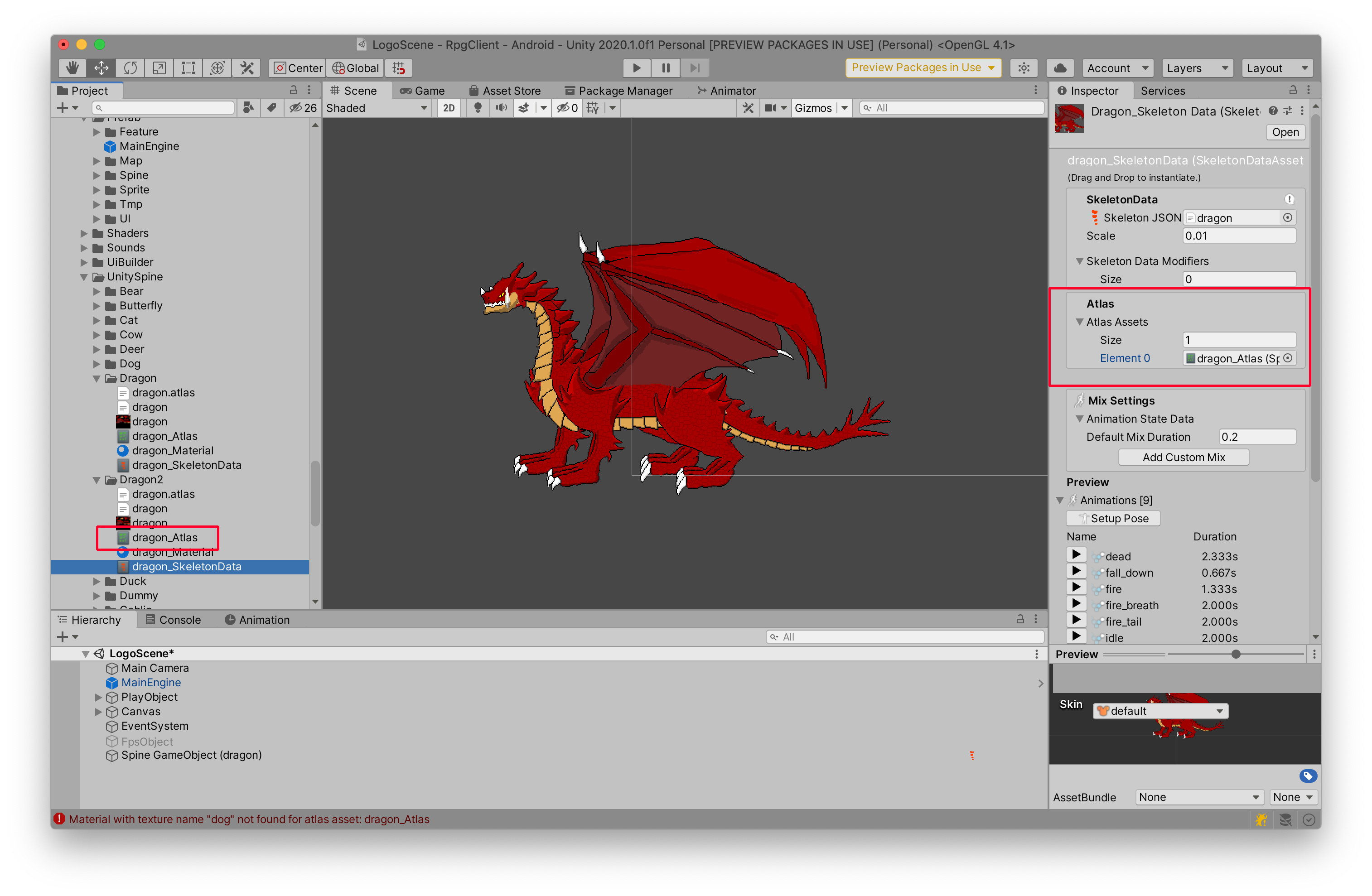 인터넷을 검색해보니, 스파인 프로그램에서 내보기 할 때, altas파일에 txt를 꼭 확인하라고 하는데,